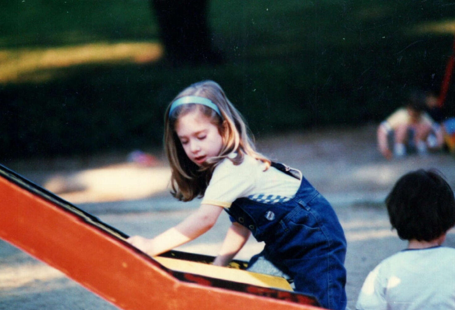 I was most likely attempting to climb the slide backward here, completely focused on my little mission and determined to figure it out.Πιθανότατα προσπαθούσα να ανέβω την τσουλήθρα ανάποδα εδώ, απόλυτα συγκεντρωμένη στη μικρή μου αποστολή και αποφασισμένη να τα καταφέρω.